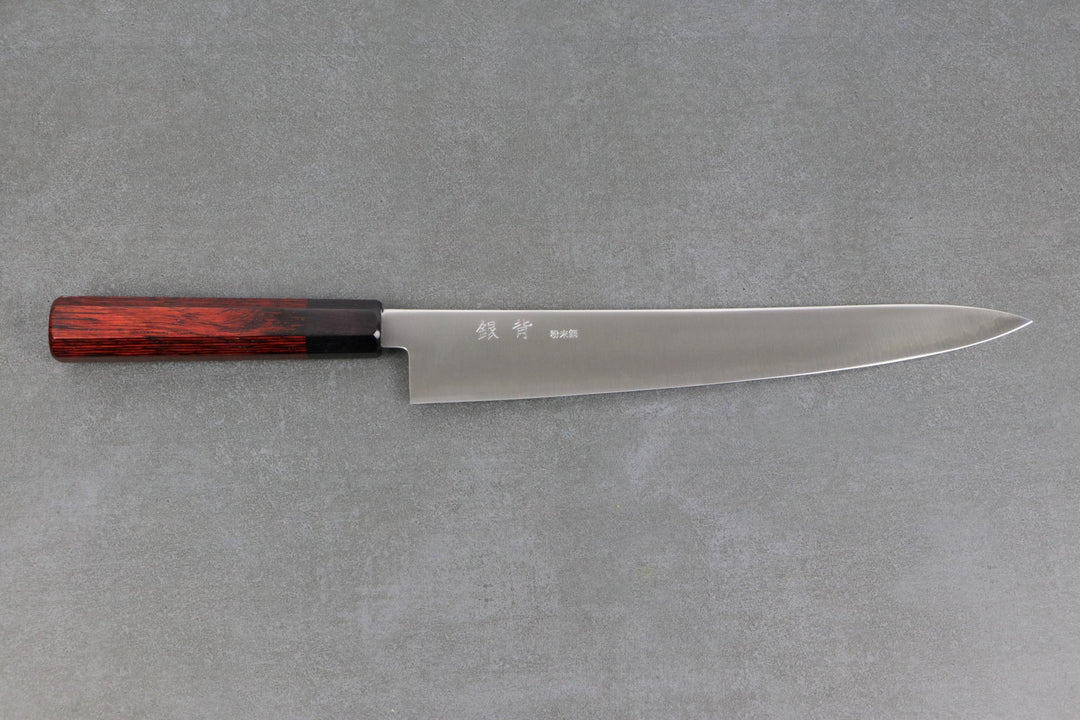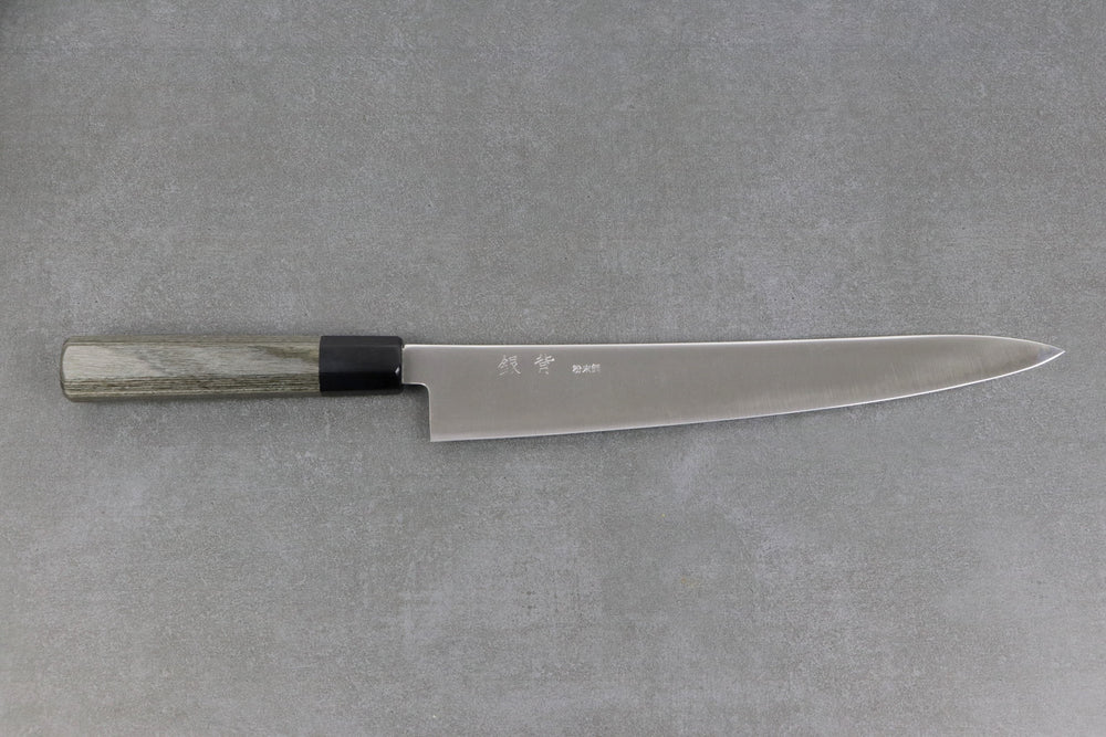 - Sujihiki: Variation des Sushi Messer für Fleisch. Beidseitiger Schliff der Klingen