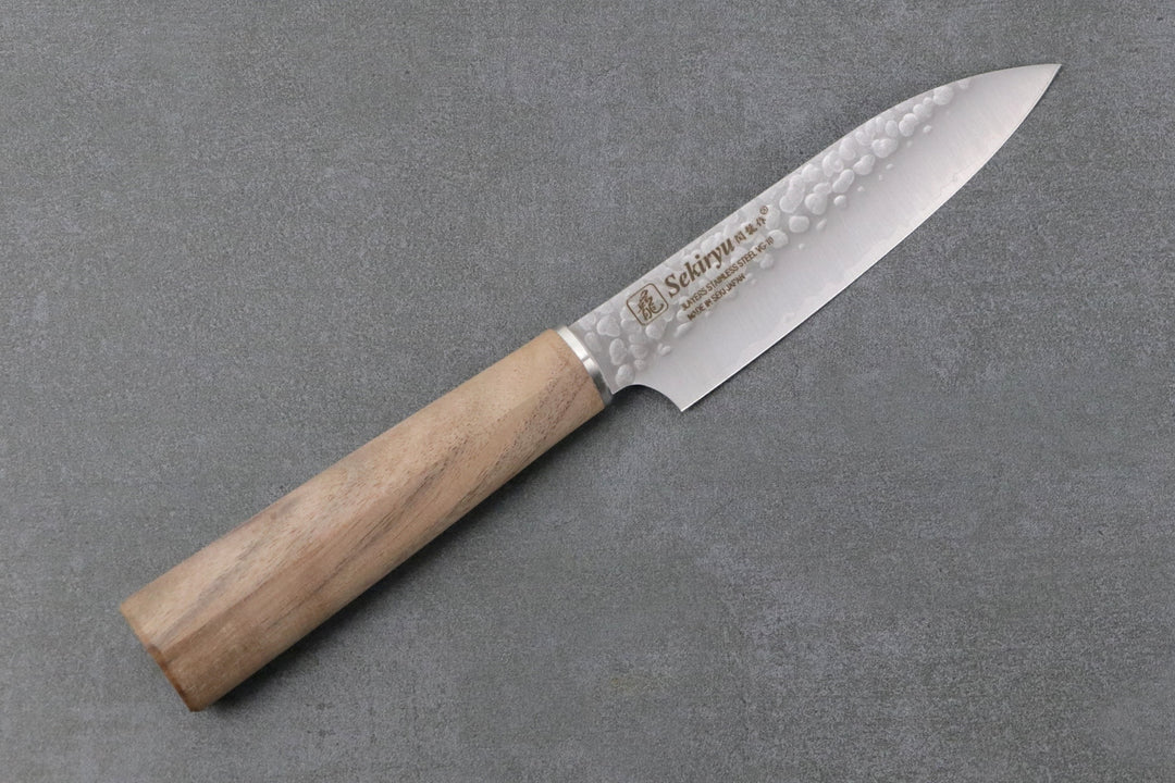 Petty Messerformen sind oft eindeutig zu erkennen. Sie gelten als das Officemesser Pendant aus Japan. Neben dem Einsatz als Gemüsemesser können auch kleine Portionen Fisch und Fleisch bearbeitet werden. Die Klingenlänge startet bei 8 cm und in der Regel sind Klingenlängen bis 15 cm normal. Der Schliff ist beidseitig und das geringe Gewicht macht diese Messerart sehr agil. Daher ist ein solches Petty Messer bzw. Schälmesser oft im Messerblock zu finden. Auch für Aufgaben als kleines Ausbeinmesser kann diese Klinge genutzt werden.