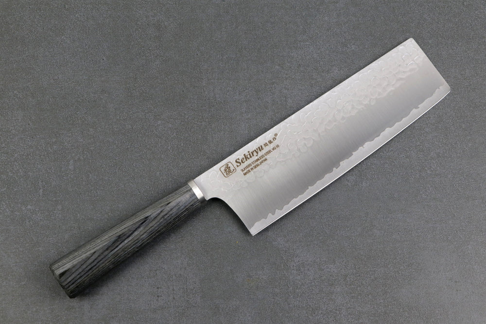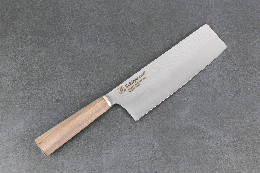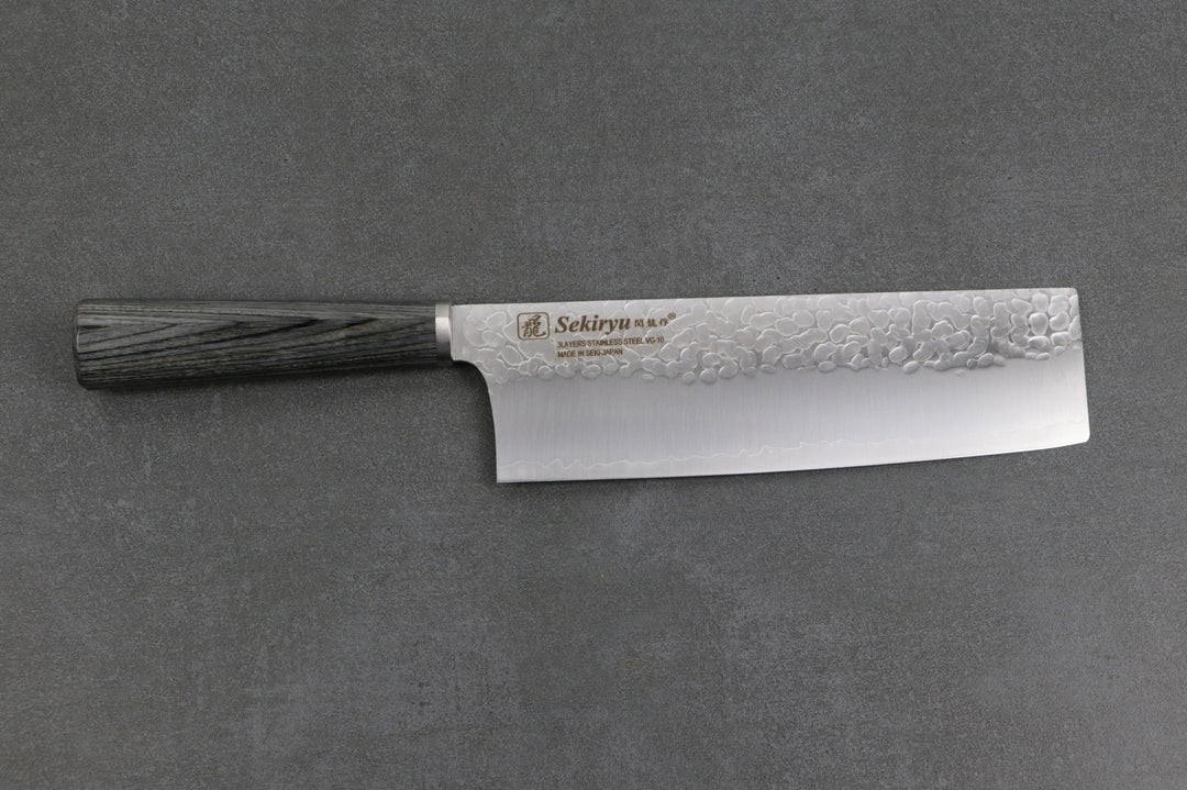 Dieses klassische japanische Messer für Gemüse ist beidseitig geschliffen und erlaubt das sehr präzise Schneiden von Gemüse. Die einseitig geschliffenen Variante des Nakiri wird Usuba genannt. Das hohe Klingenblatt ist von Vorteil beim Zubereiten von voluminöserem Gemüse und kann gleichzeitig auch zum Hacken von Kräutern genutzt werden. Praktisch kann das große Blatt ebenfalls sein beim Verschieben des Schnittguts, ähnlich einer Schaufel. Eine der bekanntesten Messerarten aus Japan.