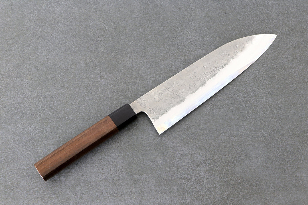 Das Santokumesser ist ein Allzweckmesser und der Name Santoku kann übersetzt werden mit „Drei Tugenden“. Fleisch, Fisch und Gemüse können mit diesem Messer mühelos verarbeitet werden. Es ist neben dem Gyuto das wohl bekannteste japanische Küchenmesser. Varianten bewegen sich in einer Klingenlänge von 15cm - 18cm. Die Santoku Messerform ist ein Allzweckmesser und gehört zu den poulärsten Messerarten aus Japan.